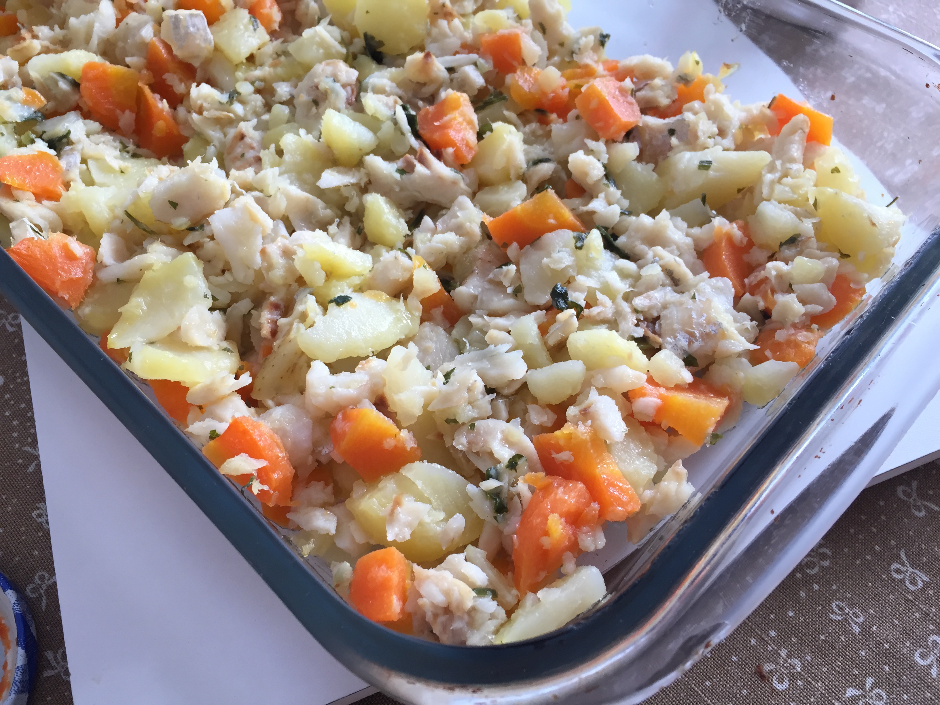 • Cozinhe a batata e a cenoura (cubinhos)  em água e sal, reserve;