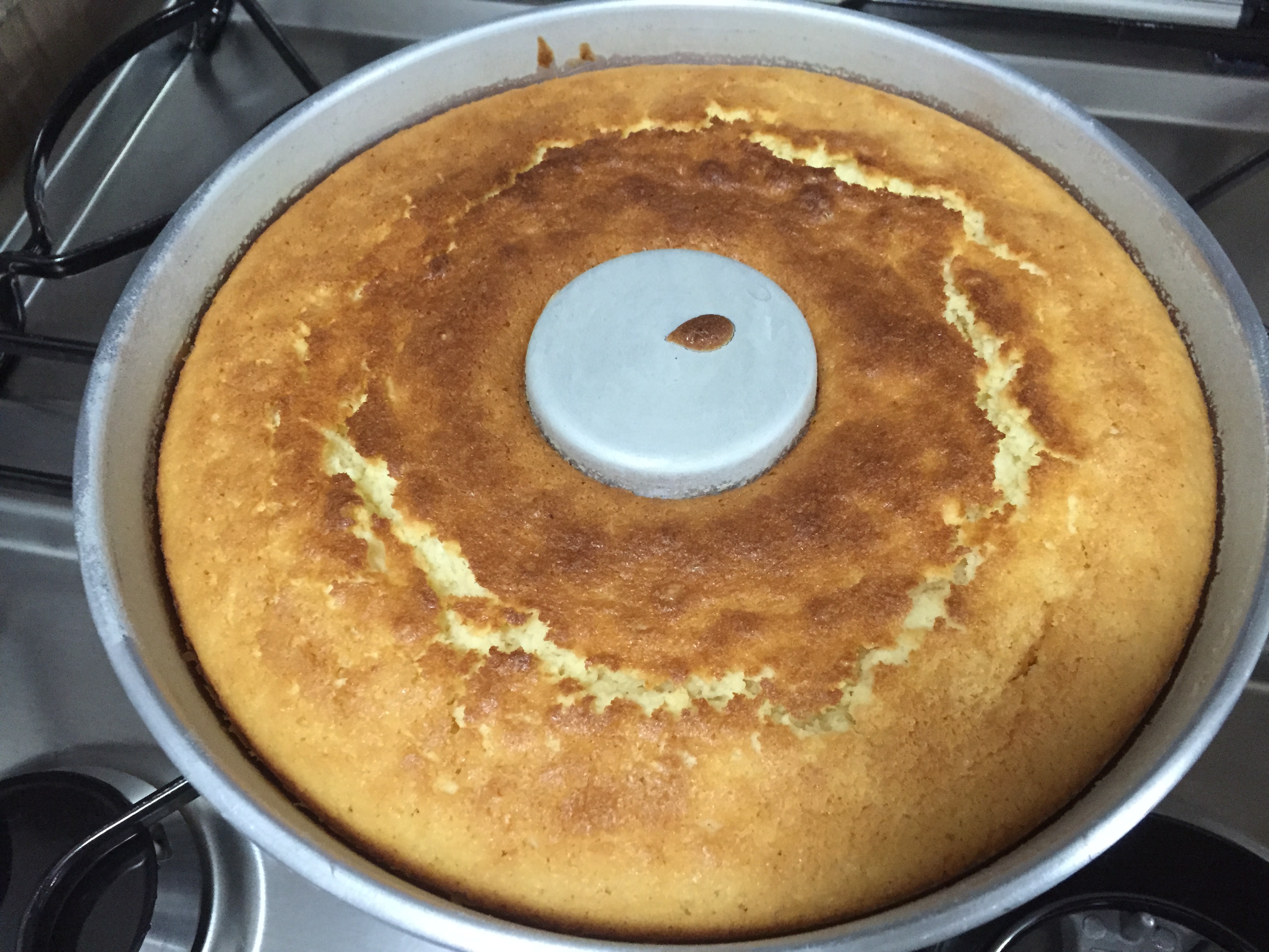 Ontem estava na Zona Cerealista de São Paulo (Rua Santa Rosa) e encontrei uma massa de aipim pronta, industrializada. Resolvi acreditar no produto e seguir a receita que estava no verso (seguir não na integra, fiz algumas mudanças). Fiquei meio desconfiado, pois nunca tinha visto receita de bolo de aipim com leite condensado, mas, era o que tinhamos no momento para matar a saudade do gosto desse bolo, que minha mãe fazia com uma maestria espetacular, sempre em forma redonda, com ou sem furo, nas festa juninas.