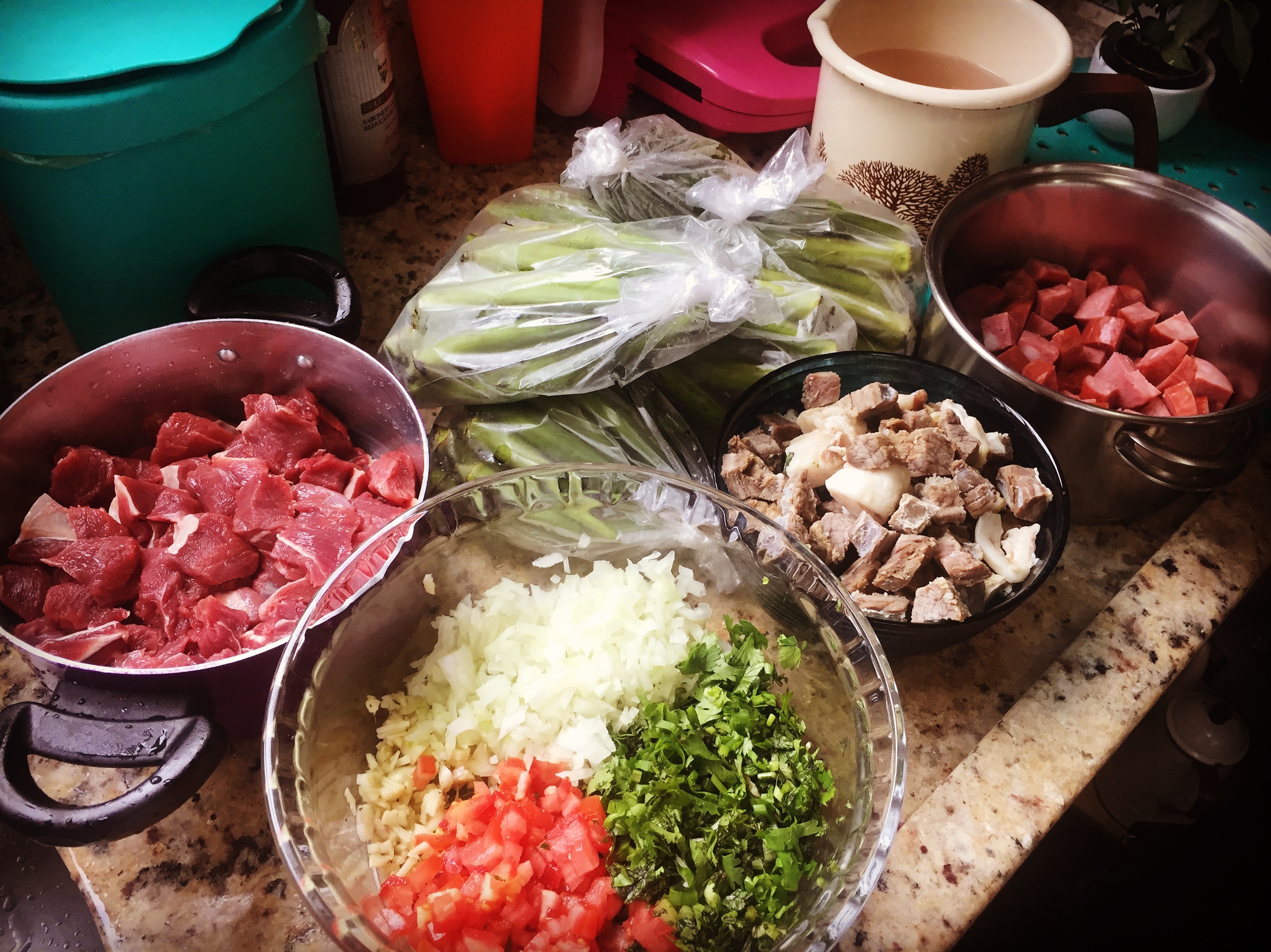Ingredientes: músculo, carne de sertão, lingüiça, tomate, cebola, alho, coentro, quiabo …