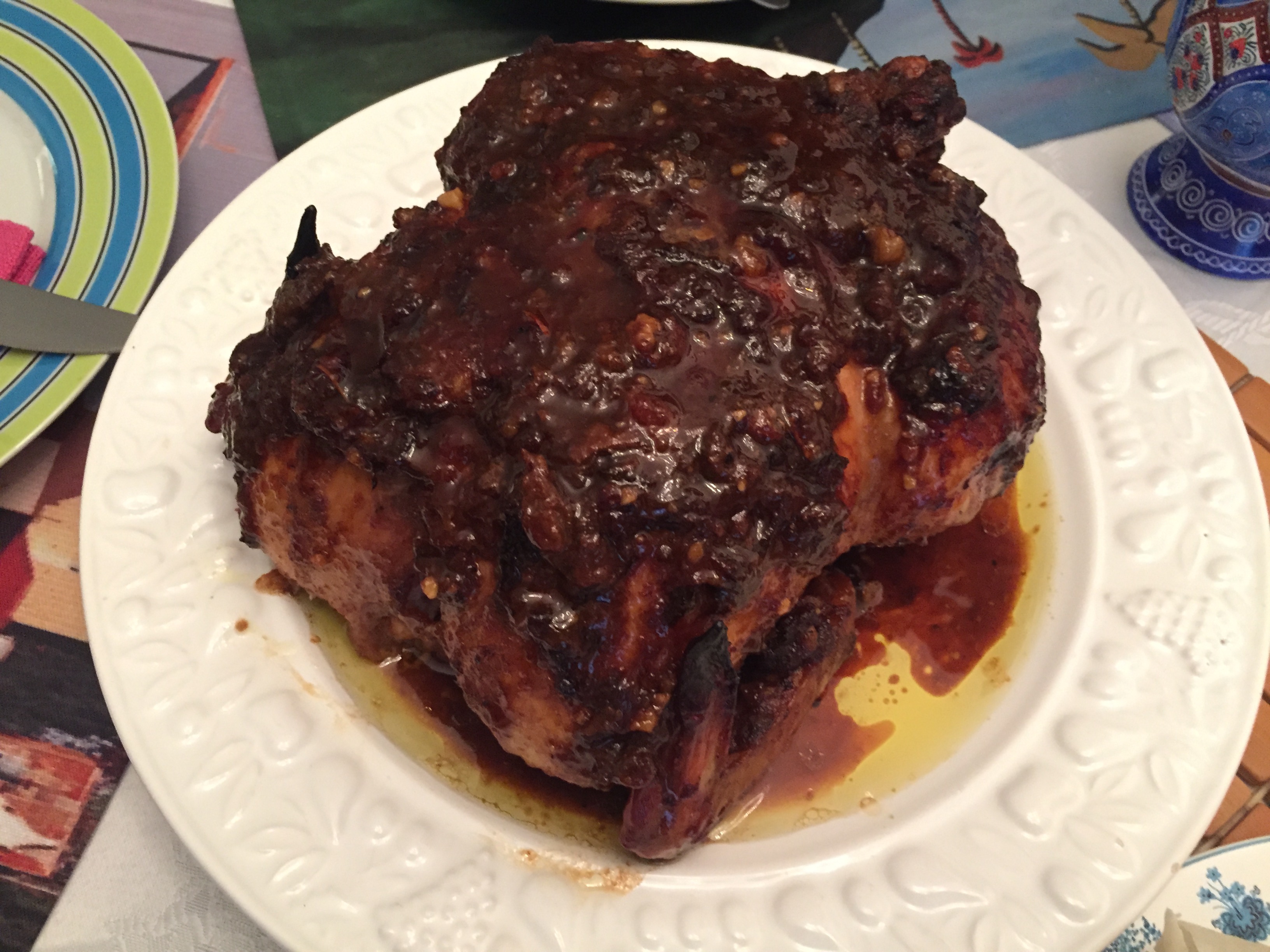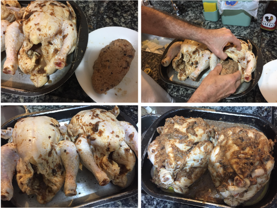 - Lambuze os frangos, por fora e por dentro, com um pouco da pasta de ameixe;