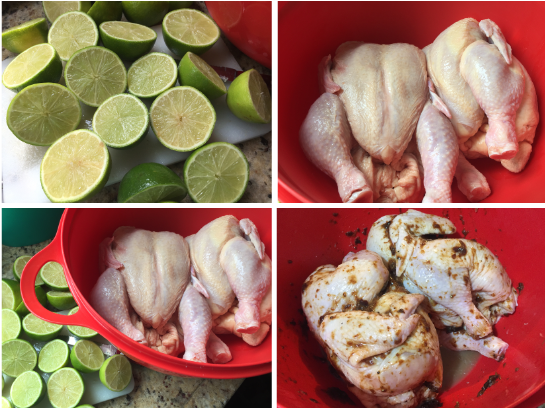 - Misture bem os sucos dos limões com o frango, inclusive por dentro;
