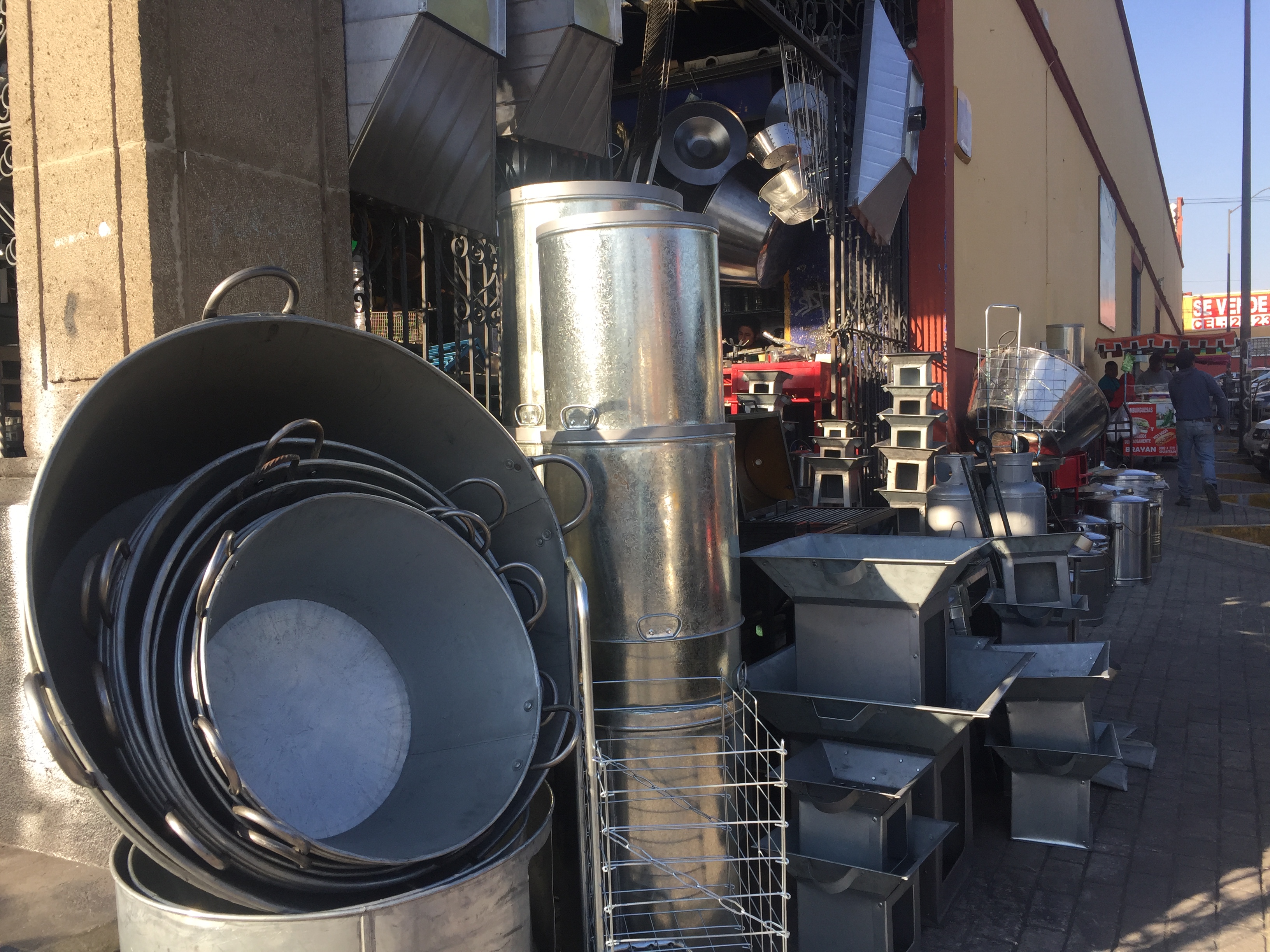 O Mercado de Fierro Santa Rosa é um mercado enorme só com pecas de inox, ferro, alumÃnio e outros metais. Vende de tudo para cozinha doméstica, industrial, restaurante e especialmente para o comercio das vendas de comidas de rua. Um paÃs que faz das suas ruas um grande comedouro a céu aberto, não é de estranhar que tenha um mercado de porte só para vendas dos equipamentos e utensÃlios necessários ao comercio ambulante. Em Puebla – México.