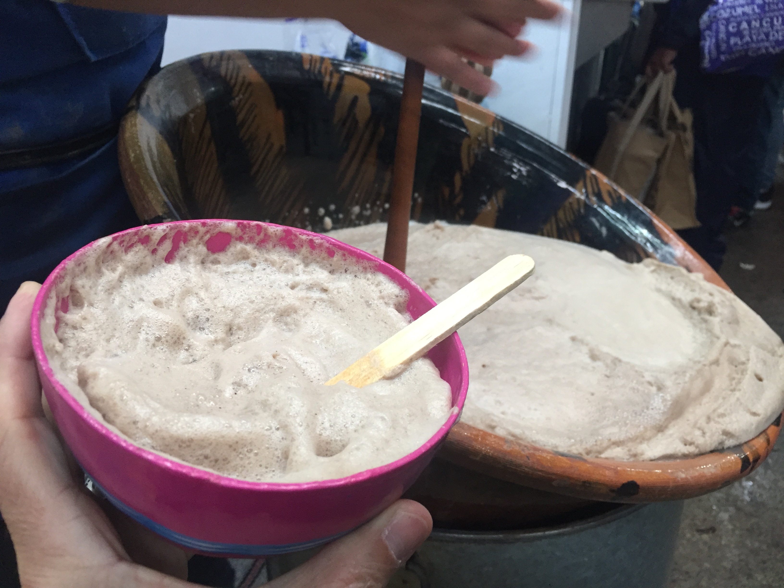 Agora sim entendi a verdadeira espuma dos Astecas na preparação da bebida de cacau 100% (amêndoas moídas no metade, água e açúcar, só!). Espuma firme, consistente e que lembra um creme aerado. Isso é dos “Dios”.